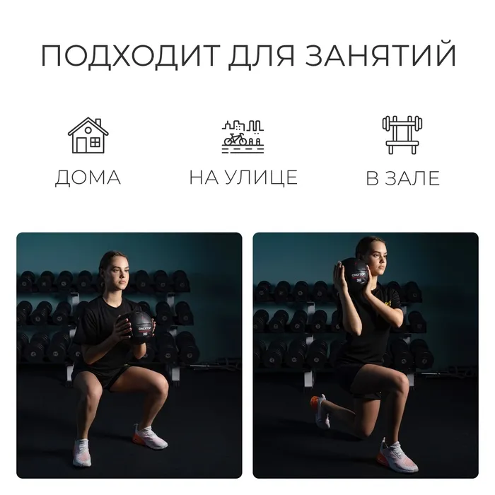 Медбол подходит для занятий дома, в зале и на улице. Применяется в тренировках на развитие силы, для улучшения работы мышц рук, груди, плеч и пресса, а также для реабилитационных занятий.