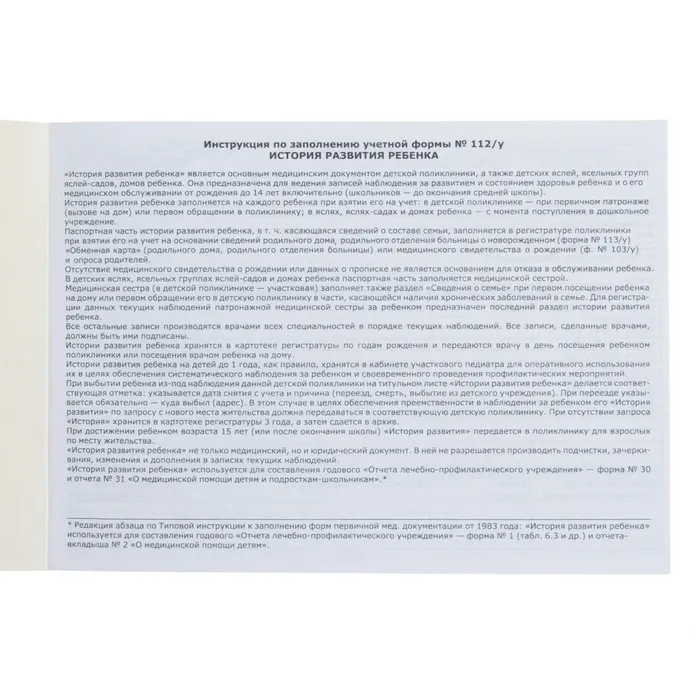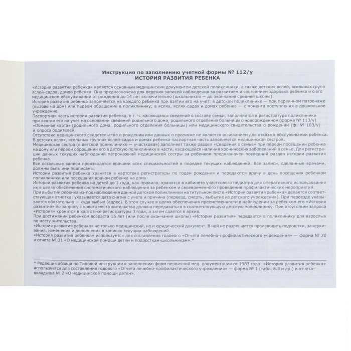 Медицинская карта ребёнка "История развития" А5, 205 х 150 мм, форма 112, твёрдая обложка, 96 листов