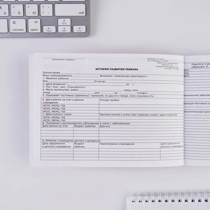 Медицинская карта ребенка Форма №112/у в мягкой обложке «Голубые звездочки», 40 листов — Характеристики