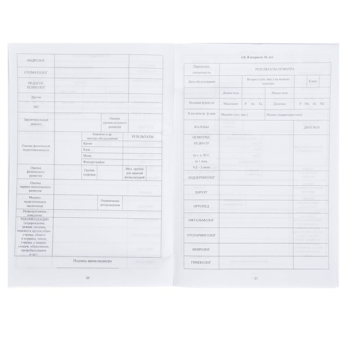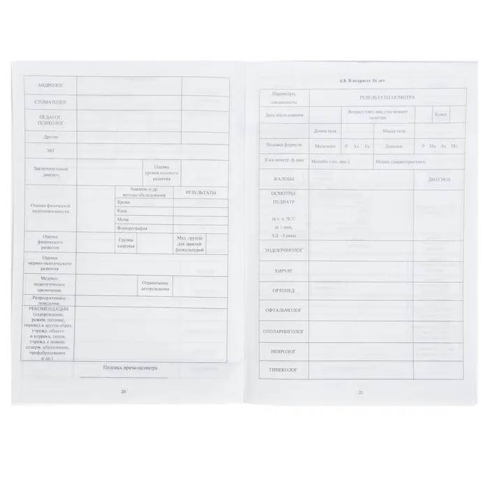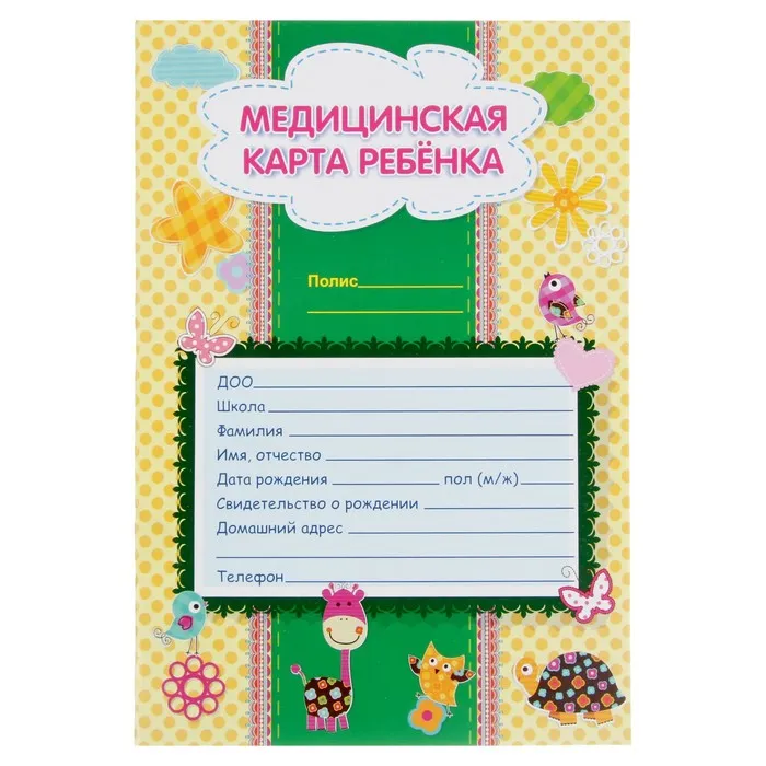 Медицинская карта ребёнка А4, 16 листов, обложка - мелованный картон 215 г/м², блок офсет 65 г/м². Форма № 026/у-2000 — Характеристики