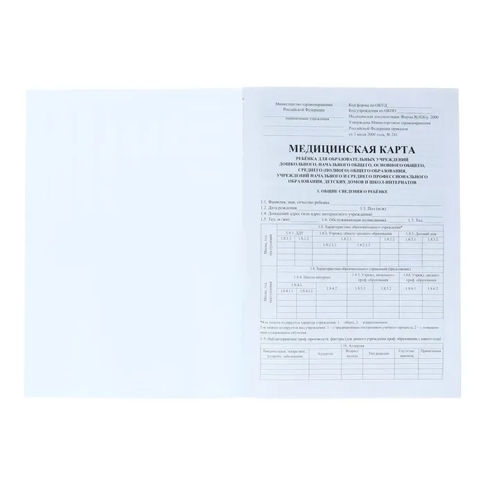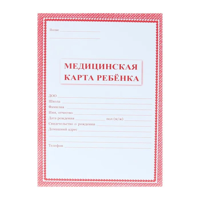 Медицинская карта ребёнка А4, 16 листов, обложка - офсет 160 г/м², блок офсет 65 г/м². Форма № 026/у-2000