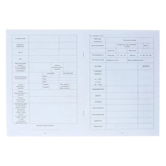 Медицинская карта ребёнка А4, 16 листов, обложка - офсет 160 г/м², блок офсет 65 г/м². Форма № 026/у-2000 — Характеристики