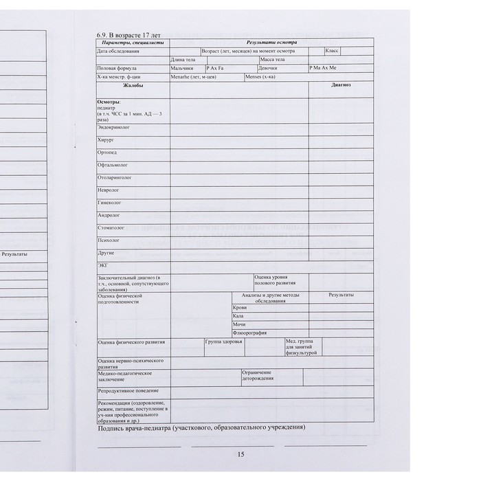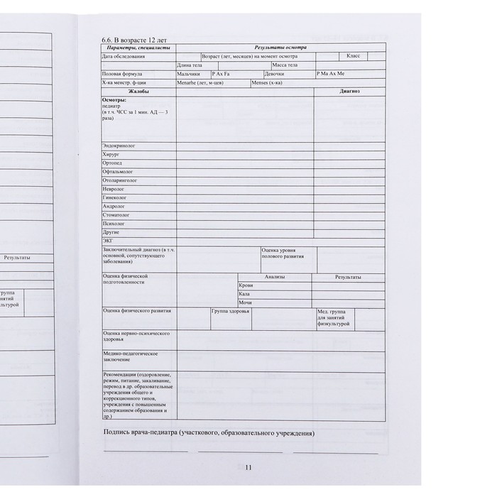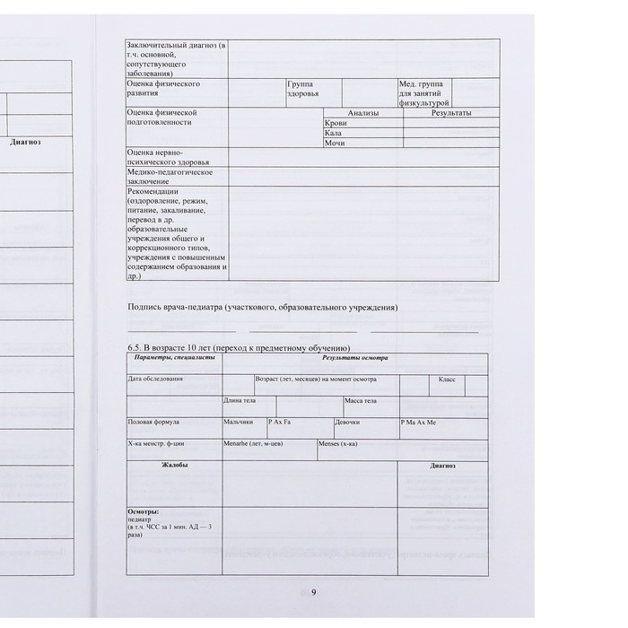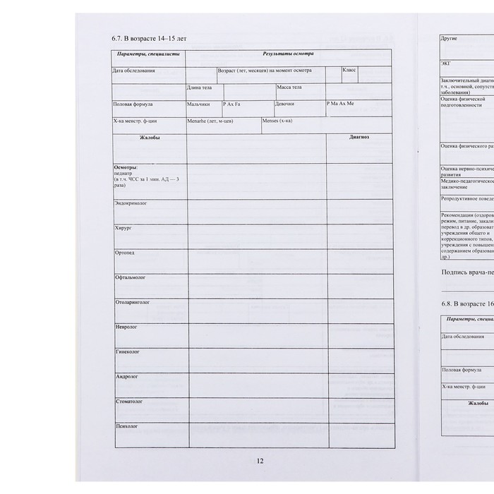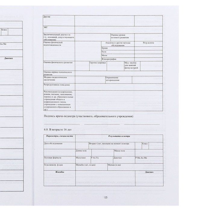 Медицинская карта ребёнка А4 «Классика», форма № 026/у-2000, 16 листов — Характеристики