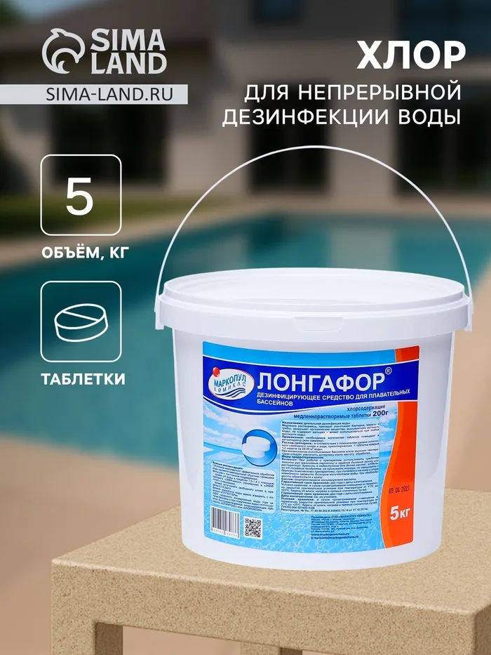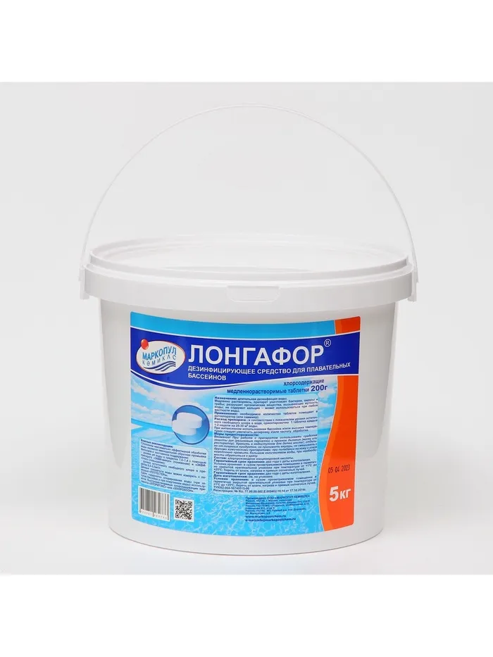 Медленнорастворимый хлор "Лонгафор" предназначен для непрерывной дезинфекции воды. Медленно растворяясь, препарат уничтожает бактерии, вирусы т грибы; разрушает органические вещества, вызывающие мутность воды; не содержит кальция - может использоваться при любой жесткости воды.