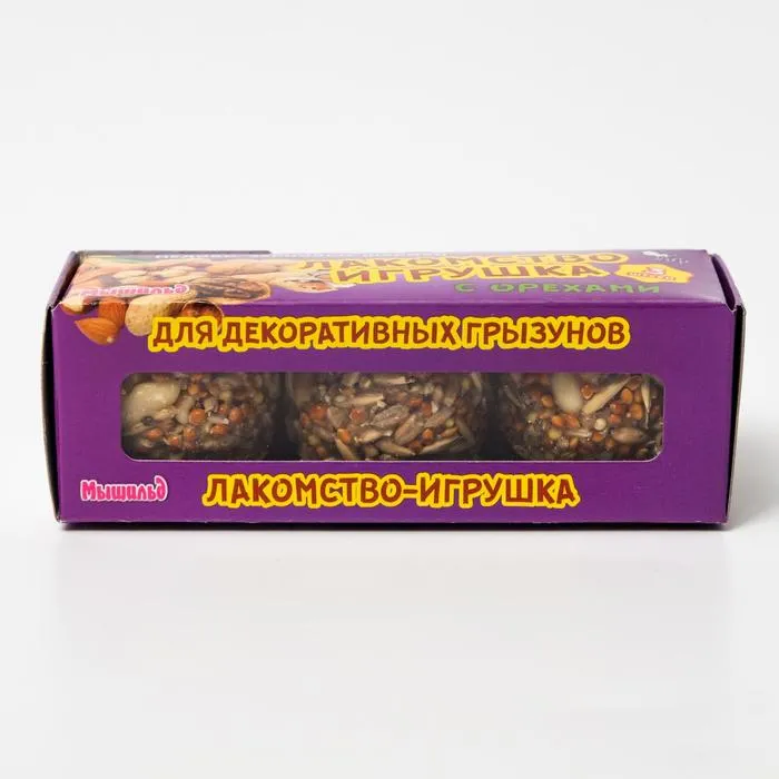 Медово-зерновые шарики Лакомство-игрушка служат прекрасным развлечением в клетке, а так же вкуснейшим лакомством для вашего питомца. Идеально подходит для шиншил, мышей, крыс, хомяков и морских свинок. С нашими зерновыми шариками Ваш питомец не заскучает, он будет с удовольствием гонять шарики и в процессе игры подкрепляться вкусными и полезными зернышками, которые в их составе. Состав: овес, ячмень, овсянка, кукуруза, гречиха, кэроб, горох, семя подсолнечника, орехи, пшеница, просо красное, мясные гранулы. Все что нужно, для полноценного роста и развития Вашего питомца.
