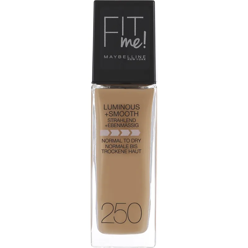 Тональный крем Maybelline Fit Me Luminous & Smooth 250 Sun Beige обеспечивает естественный и свежий вид. Он отличается легкой, мягкой и дышащей текстурой, идеально подходит для средне-светлой, нормальной и сухой кожи.