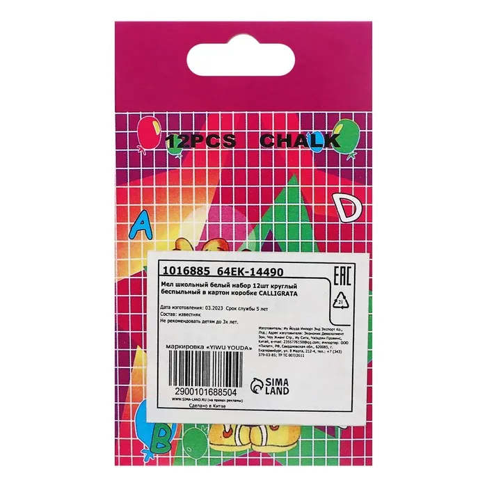 Изготовлен из экологически чистых материалов, без примесей и добавок.Мел не крошится и не царапает покрытие.Предназначен для рисования на любой шероховатой поверхности.Упаковка - картонная коробка.