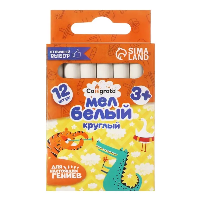 Мел школьный, белый, набор 12 штук, круглый, беспыльный, в картонной коробке — Характеристики