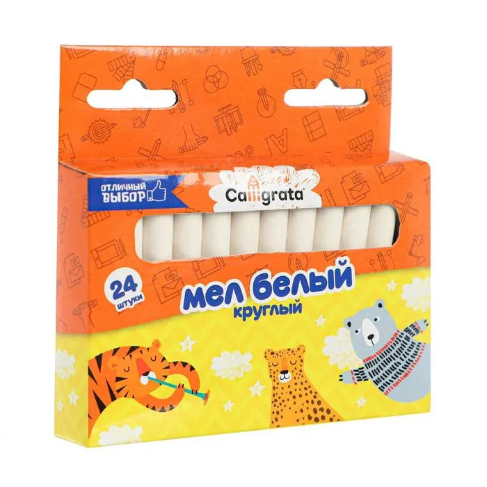 Мел школьный белый, набор 24 штуки круглый беспыльный, в картонной коробке — Характеристики