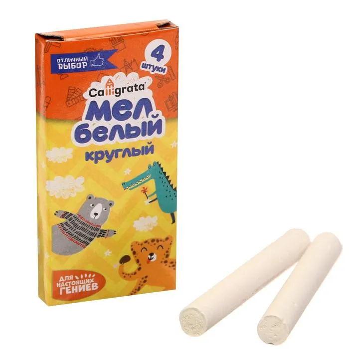 Мел школьный белый набор 4 штуки, круглый беспыльный, в картонной коробке — Характеристики