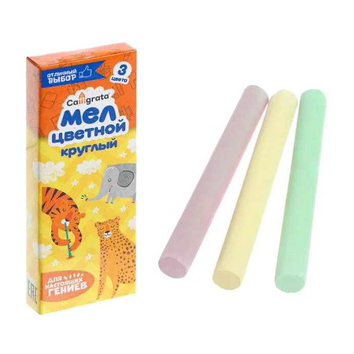 Мел школьный цветной, набор 3 цвета, круглый, беспыльный в картонной коробке — Характеристики