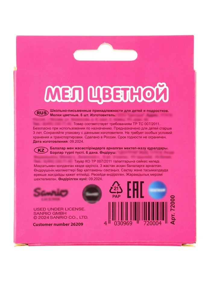 Мел цветной «Kuromi»,6 шт., квадратное сечение 1 × 1см — Характеристики