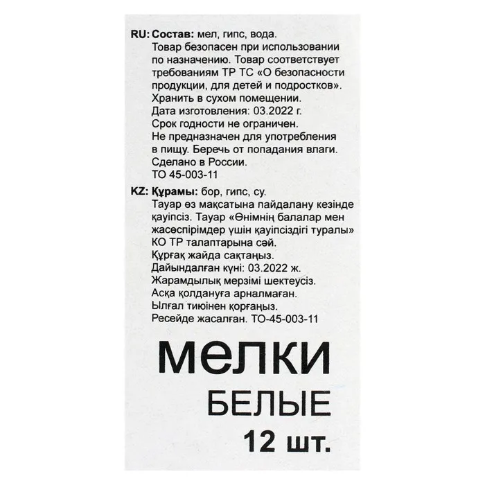 Мелки белые «АЛГЕМ», в наборе 12 штук, квадратные — Характеристики