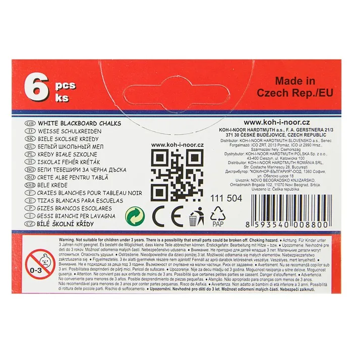 Мелки белые Koh-I-Noor, в наборе 6 штук, квадратные — Характеристики