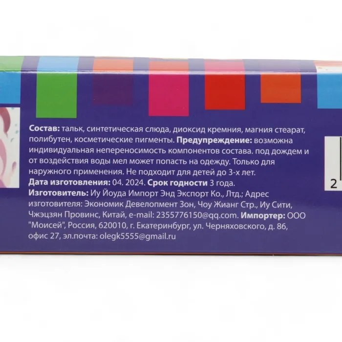 Внимание: под дождем и от воздействия воды мел может попасть на одежду.