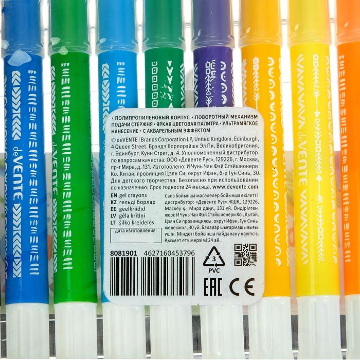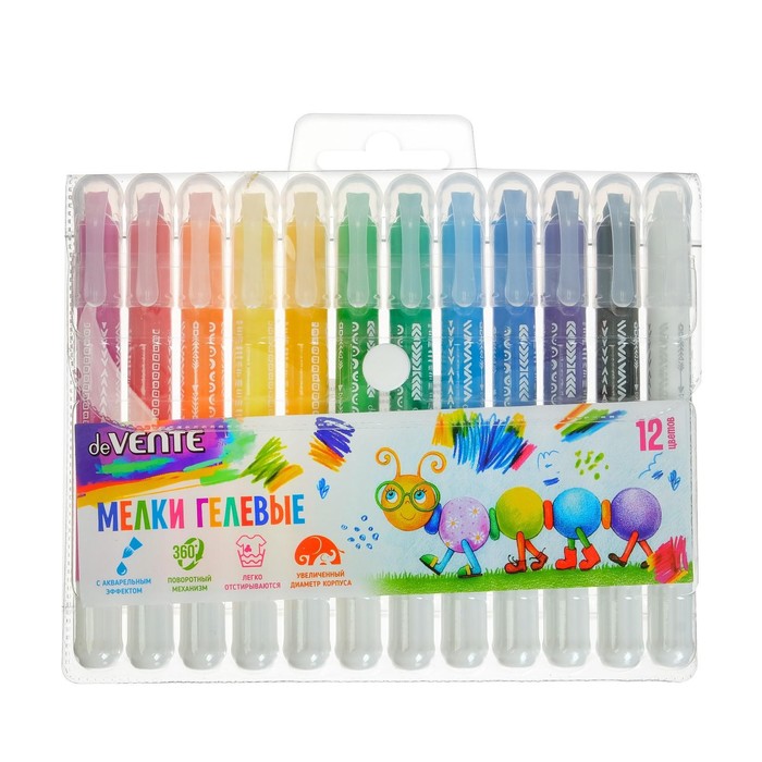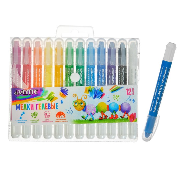 Мелки гелевые 12 цветов deVENTE, супермягкие, с акварельным эффектом, пластиковый корпус с поворотным механизмом, в блистере — Характеристики