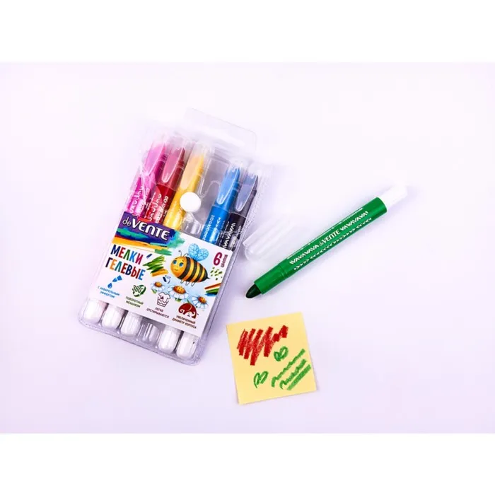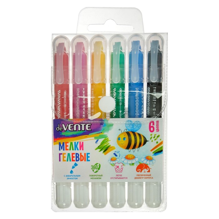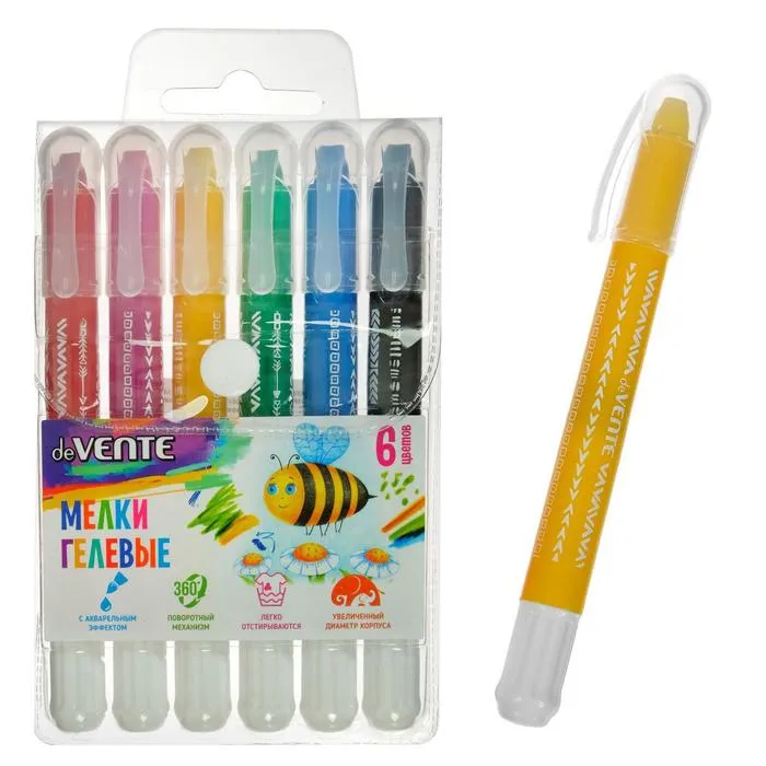 Мелки гелевые 6 цветов deVENTE, супермягкие, с акварельным эффектом, пластиковый корпус с поворотным механизмом, в блистере — Характеристики
