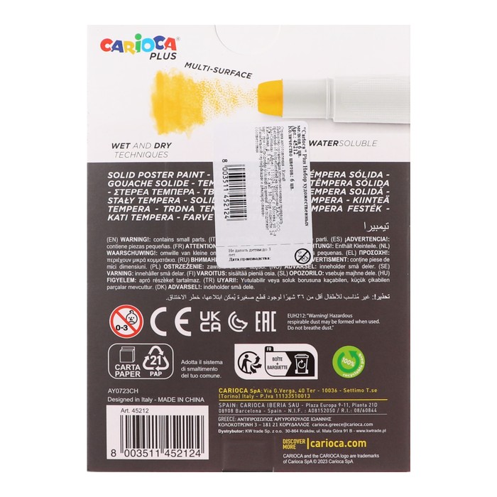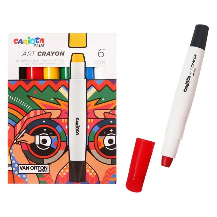 Набор художественных мелков CARIOCA Plus, 6 шт., в картонной упаковке. Нежное, универсальное средство на восковой основе.Мягкая пастель, заключенная в прочную упаковку с поворотным держателем с эргономичной ручкой.Мелки имеют гладкую текстуру, высокую степень покрытия, легко смешиваются и быстро сохнут.