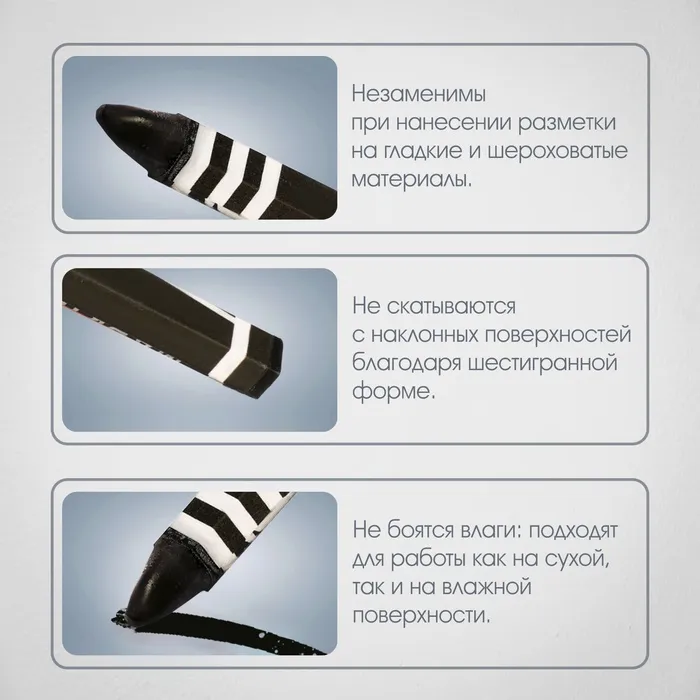 Мелки разметочные ЛОМ, восковые,110 мм, в упаковке 6 шт., черные — Характеристики