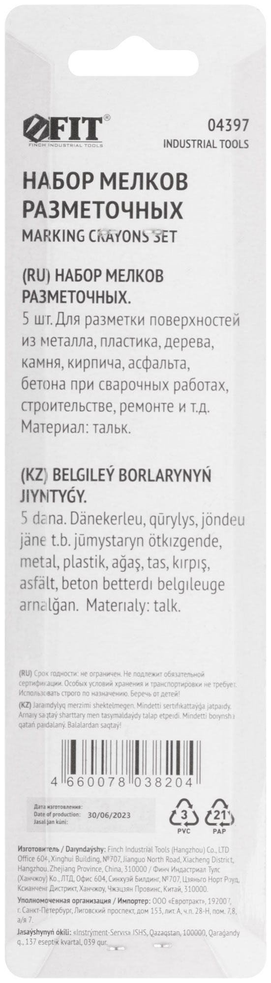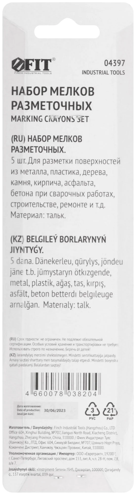 Изготовлены из талька, они обеспечивают гладкое и яркое нанесение, что позволяет легко различать разметку даже на сложных поверхностях. Упакованы в блистер, что упрощает хранение и транспортировку.