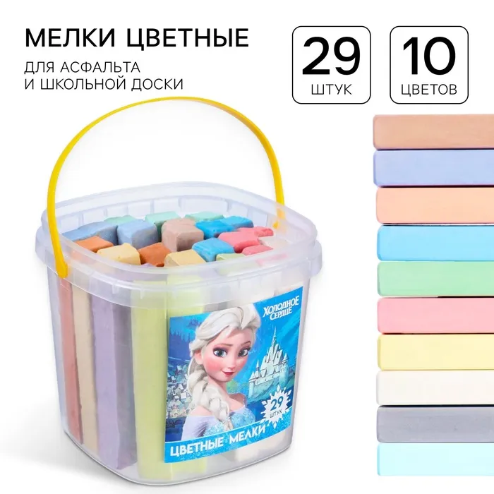 Мелки цветные, 10 цветов, 29 штук, «Холодное сердце» — Характеристики