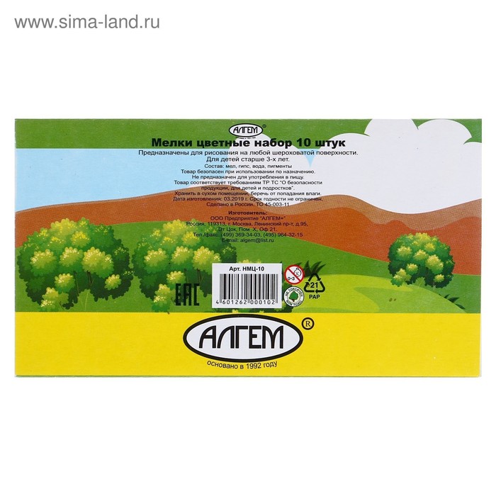 Мелки цветные «АЛГЕМ», в наборе 10 штук, квадратные — Характеристики
