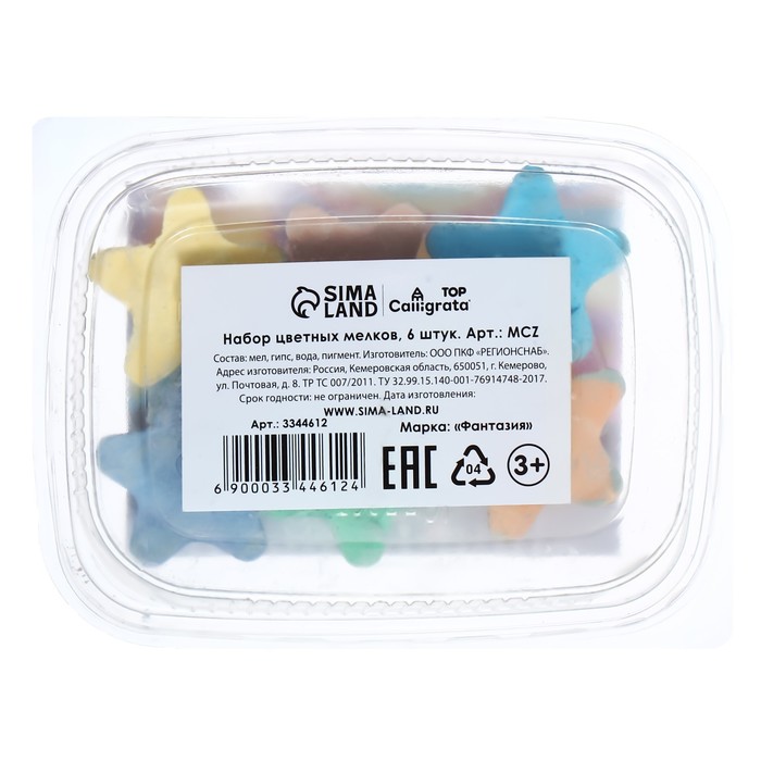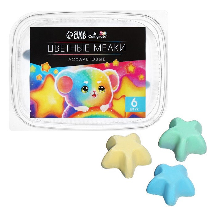 Мелки цветные для асфальта 6 штук Calligrata TOP, в форме звёздочки (3 х 1,3см; 5-7 гр), МИКС — Характеристики