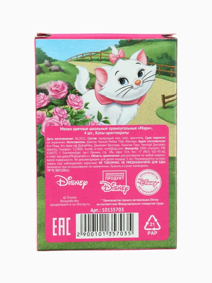 Мелки цветные школьные, 4 шт., Коты аристократы, прямоугольные — Характеристики