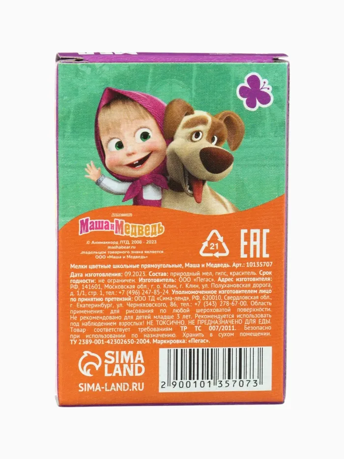 Мелки цветные школьные, 4 шт. «Маша и медведь», прямоугольные — Характеристики