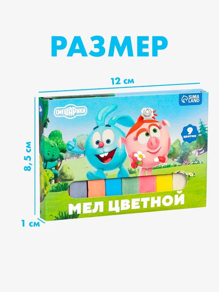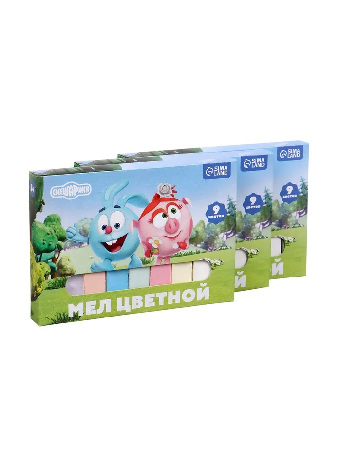 Мелки цветные школьные набор 3 шт. по 9 мелков «Смешарики», прямоугольные — Характеристики