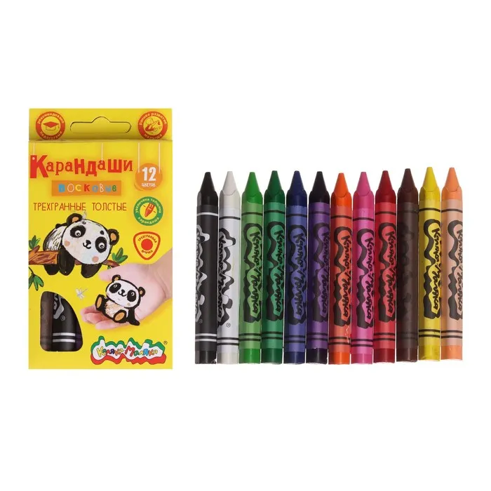 Восковые мелки идеально подходят для детского творчества. Предназначены для рисования на бумаге любого типа, а также дереве, картоне и стекле. Не пачкают руки, благодаря индивидуальной бумажной обертке каждого карандаша.