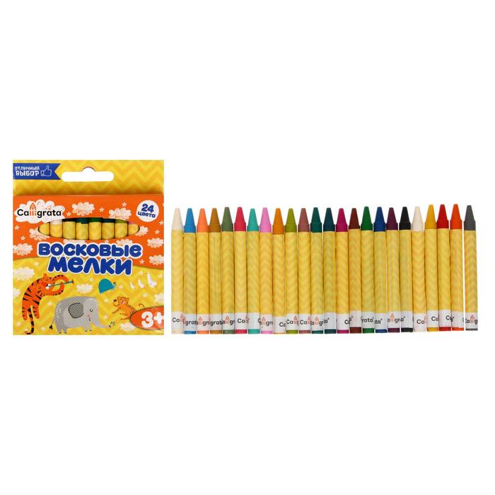 Мелки восковые 24 цвета, 93×8 мм, Calligrata, в картонной коробке