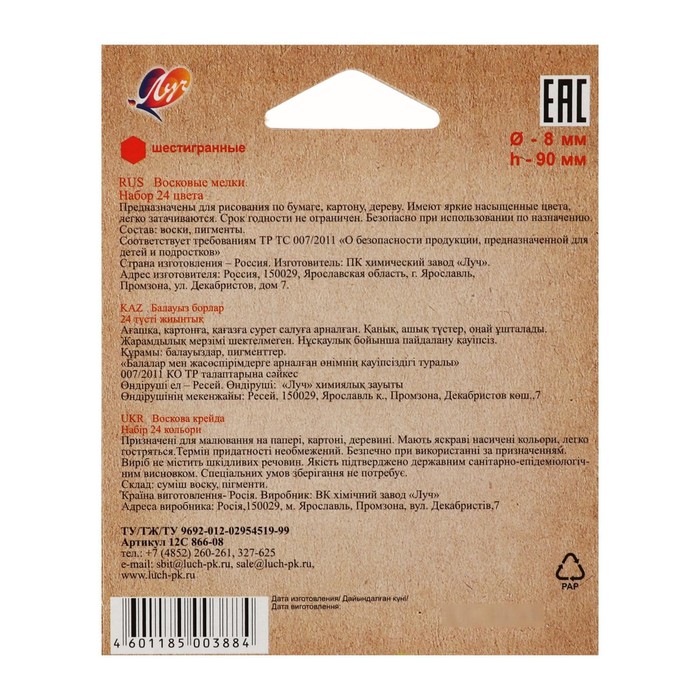 С такими помощниками, как Мелки восковые 24 цвета ZOO, шестигранные, вы легко сможете оторвать ваше чадо от компьютера или планшета и не будете переживать, что оно предоставлено самому себе. Ведь ребёнок будет занят действительно интересным и важным делом!