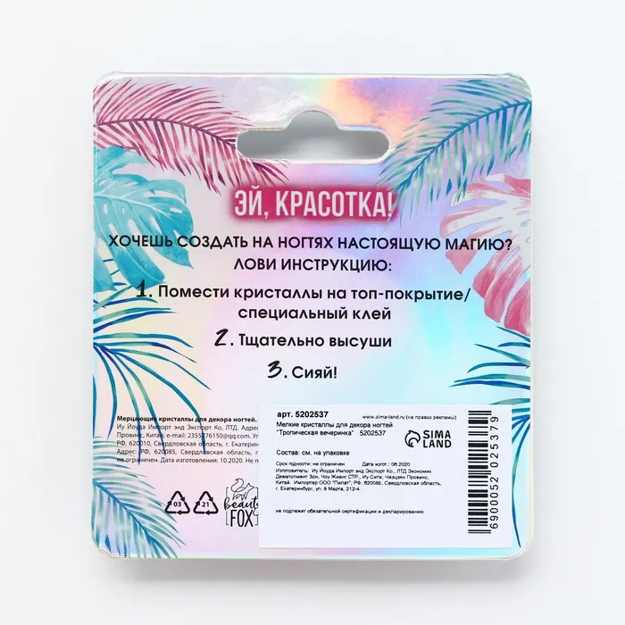 Мелкие кристаллы для декора ногтей «Тропическая вечеринка» — Характеристики