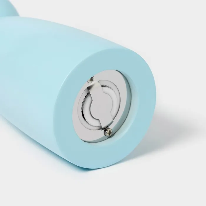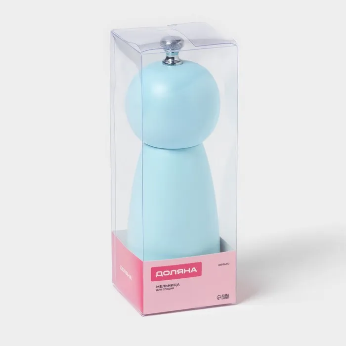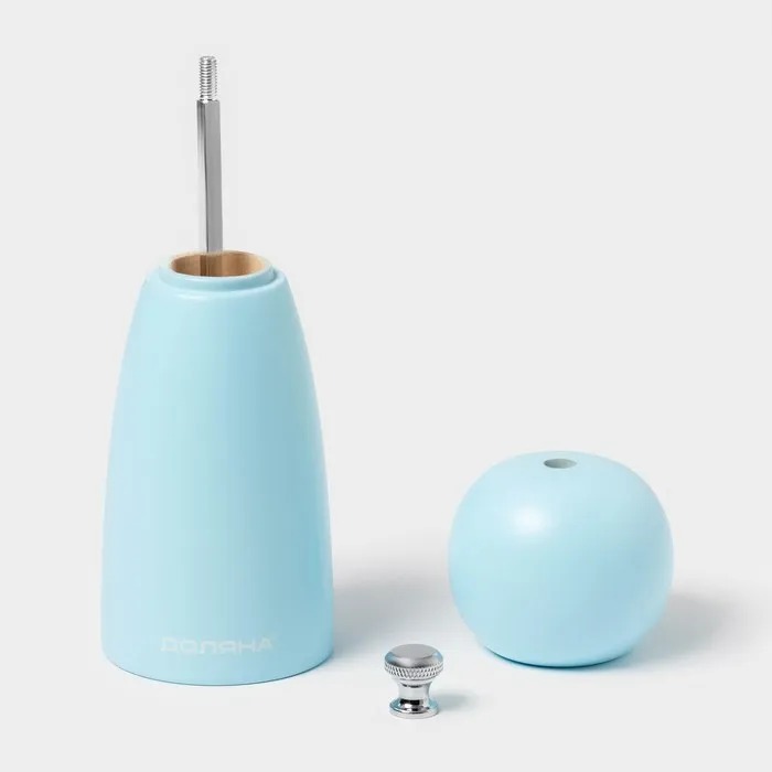 Корпус мельницы (16,5 см) выполнен из натурального каучукового дерева, которое придаёт изделию элегантный вид и делает его приятным на ощупь. Голубой оттенок добавляет нежности.