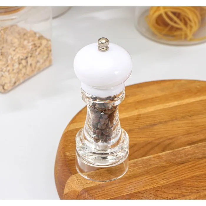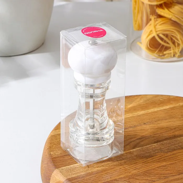 Мельница для специй Доляна «Скина», керамический механизм, 16×6 см, белая — изящный и практичный аксессуар для каждого увлечённого кулинара.