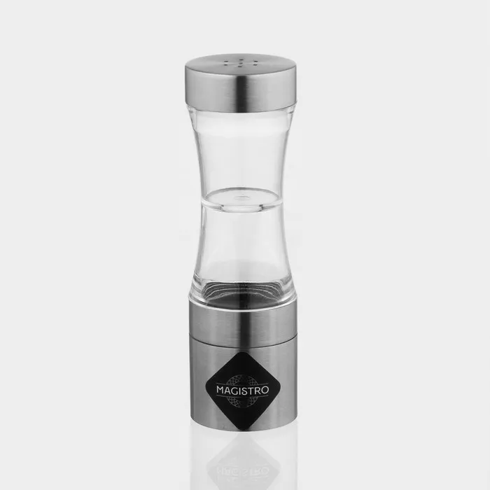 Мельница для специй Magistro «Лоста», 17.5×5.3 см, двусторонняя, керамический механизм, серебристая — изящный и практичный аксессуар для каждого увлечённого кулинара.
