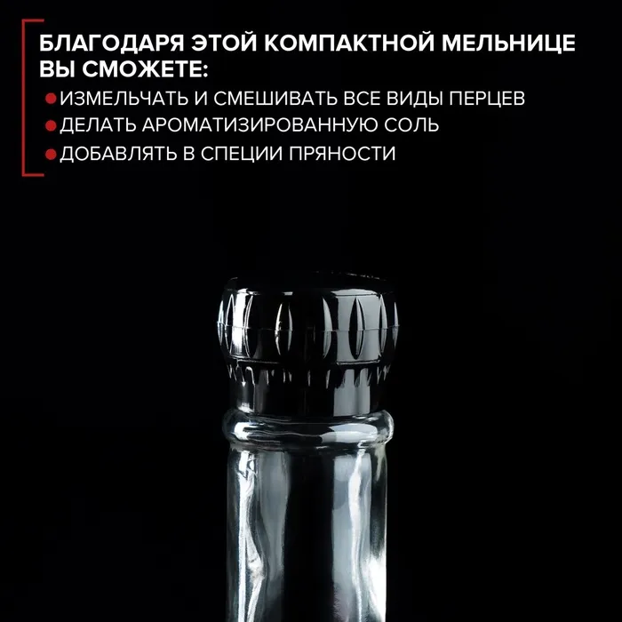 Не позволяйте никому и ничему ограничивать вашу страсть к кулинарии. Мельница для специй, пластиковый механизм, 115 мл (45-80 гр), цвет чёрный - секрет чудес на вашей кухне.