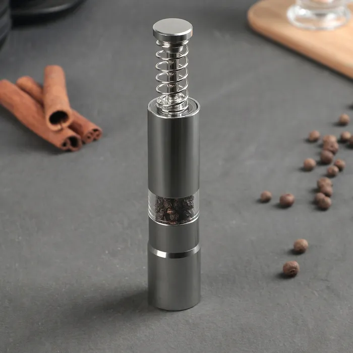 Мельница для специй «Пружина», 15×2.5 см, металлический механизм, серая — изящный и практичный аксессуар для каждого увлечённого кулинара.