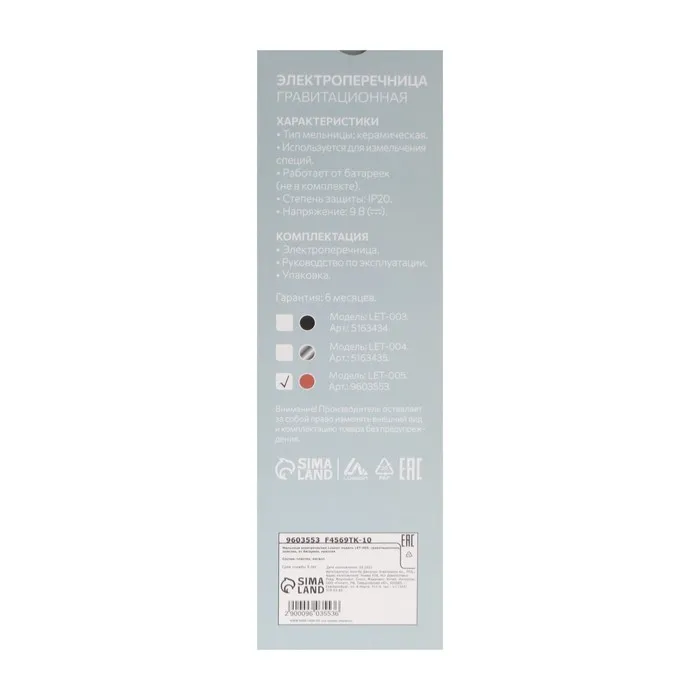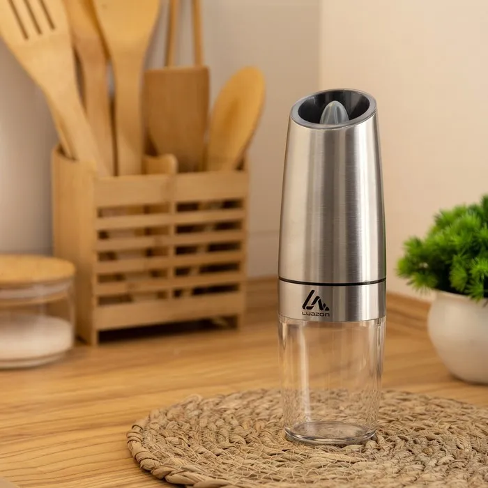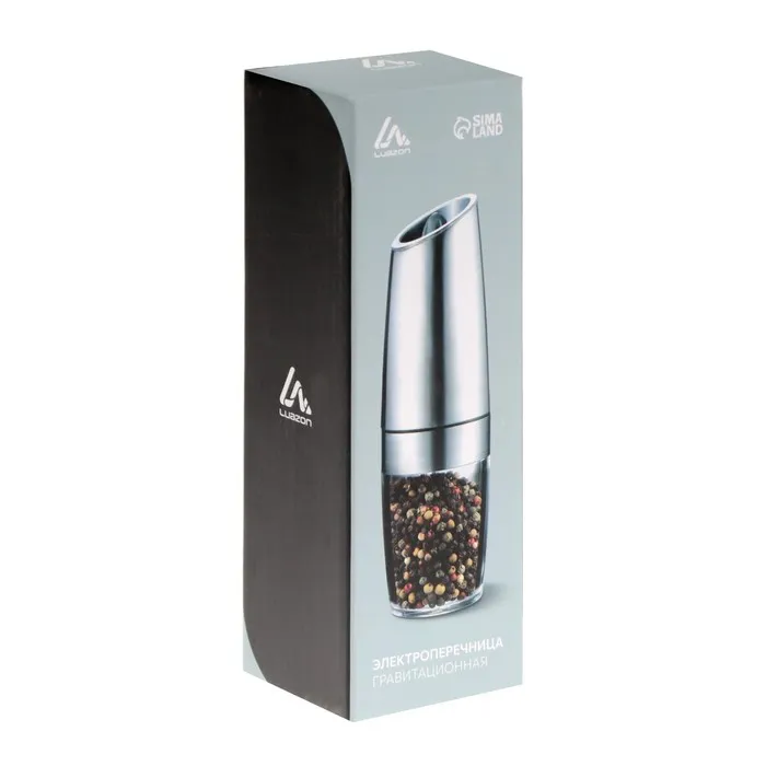 Мельница электрическая Luazon LET-004, гравитационная, металл, от батареек, серебристая — Характеристики