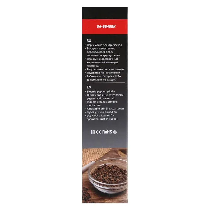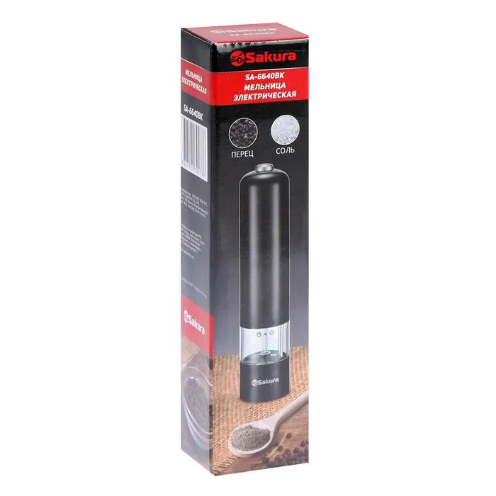 Мельница электрическая Sakura SA-6640BK, подсветка, чёрная — Характеристики