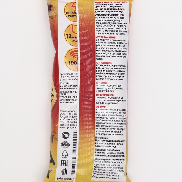 Мелок для уничтожения насекомых «Абсолют», пакет, 1 шт. — Характеристики
