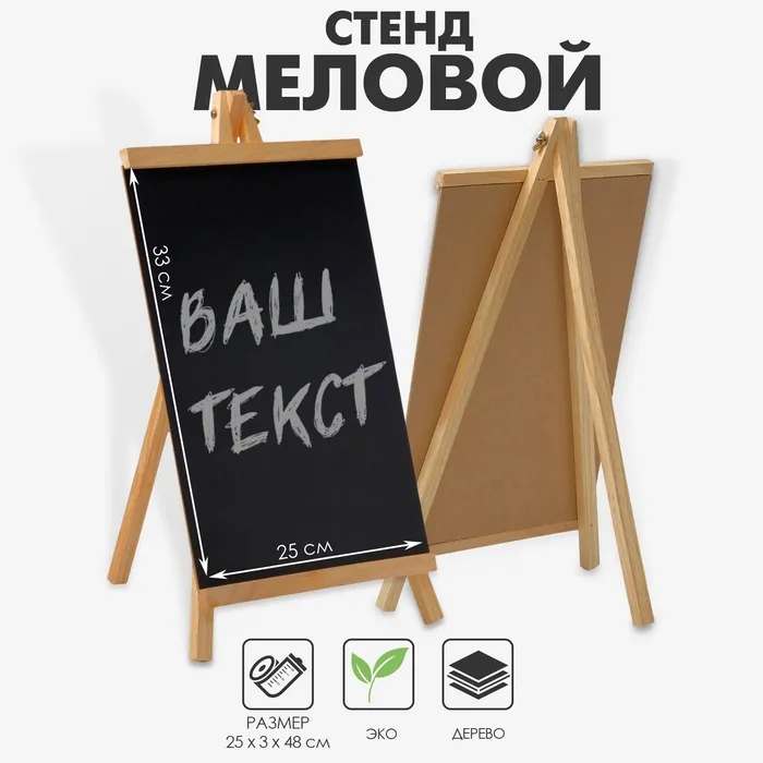 Меловой стенд — стильное и практичное решение для оформления витрин, прилавков и зон презентации. На его поверхность легко наносить надписи меловым маркером для маркировки документов, продукции и акций. Изделие подходит для использования в кафе, магазинах и на выставках, привлекая внимание к важной информации и создавая уютную атмосферу. Написи легко стираются влажной тряпкой, обеспечивая стенду долгий срок службы и многоразовое использование. Этот стенд сочетает функциональность с эстетичностью, делая пространство более организованным и привлекательным.