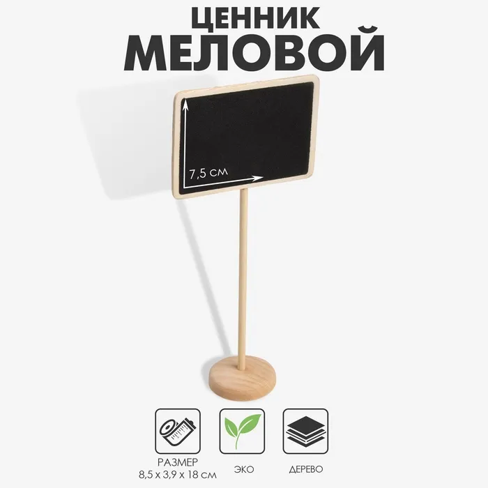 Меловой ценник из дерева с черным покрытием — это стильный и многоразовый аксессуар для оформления витрин и прилавков. На его поверхности удобно писать меловым маркером, что делает ценник идеальным для маркировки товаров, документов, акционных предложений и декоративного оформления. Надписи легко стираются влажной тряпкой, позволяя использовать его снова и снова. Прекрасно подходит для кафе, магазинов и выставочных залов, добавляя уникальный акцент и улучшая визуальное восприятие товаров, привлекая внимание клиентов к важной информации.