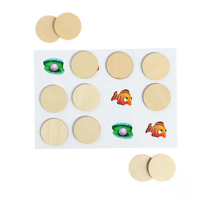 - По очереди открывайте по 2 фишки таким образом, чтобы все могли видеть изображённые под ними картинки.