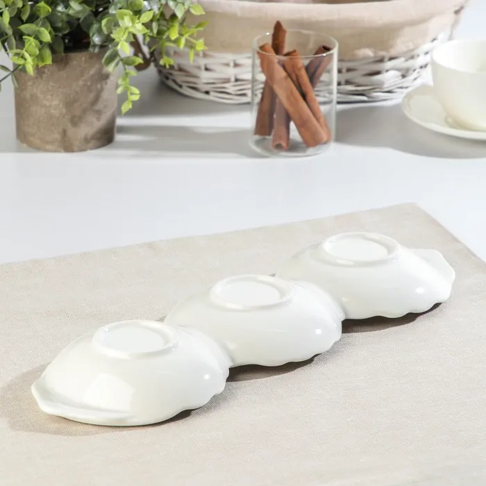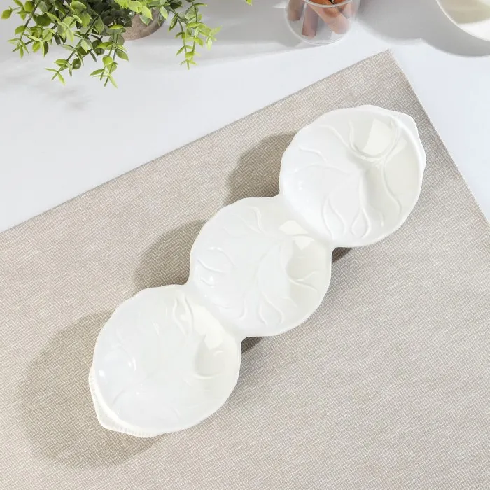 Менажница 3 ячейки «Лист», 40×12×4 см, керамика, белая — Характеристики