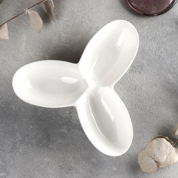 Менажница 3 ячейки Wilmax, d=17 см, фарфор, белая — Характеристики