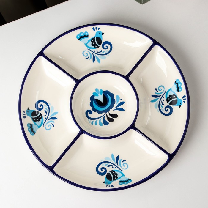 Менажница 5 ячеек Доляна «Свиристель», d=26 см, цвет белый — Характеристики