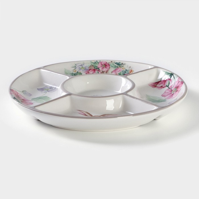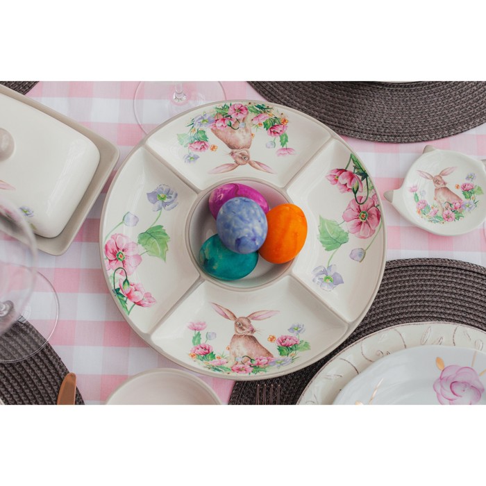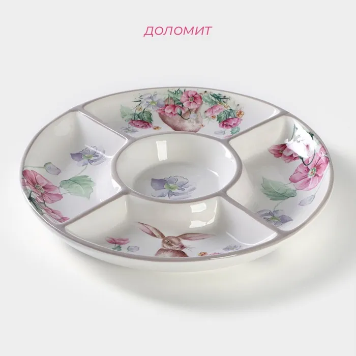 Менажница 5 ячеек Доляна «Зайка», d=26 см, доломит, цвет белый — Характеристики