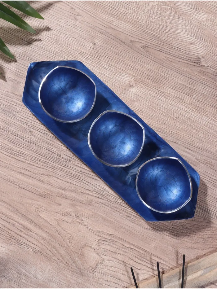 Менажница "Аква" (набор 3 шт) 9х9х5 см, на подносе, алюминий